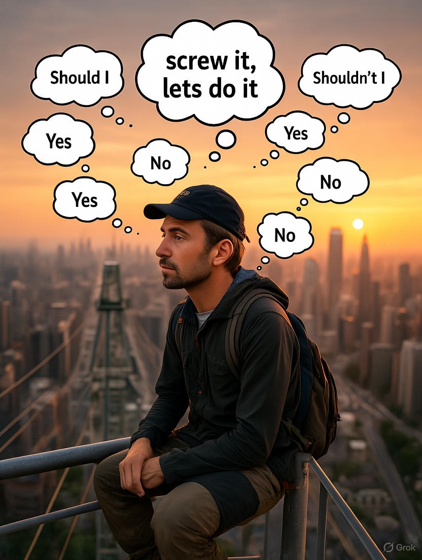 Scariosity is a blend of 'scary' and 'curiosity.' It describes the moment when fear and curiosity collide, and your next action depends on which feeling you give more attention to. When curiosity outweighs fear, you move forward. When fear dominates, you freeze.